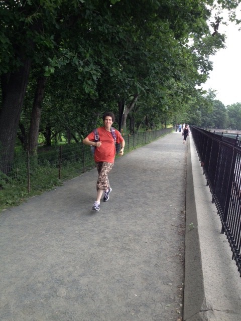 לא באנו לרוץ בפארק, אלא לטייל בו. נהנינו ללכת כמו גם לשבת בספסל נחמד הצופה לאגם, ולצפות בצבי הים מרימים ראש מעל למים. ובכל זאת, הגעתי נעולה בנעליי ריצה, כך שאוכל לחוש, ולו גם לכמה רגעים בלבד, את התחושה של ריצה בסנטרל פארק. טליה הגיבה בהבנה כאשר "גנבתי" כמה דקות של ריצה ואפילו יזמה צילום של האירוע. עם סיום הכנס נפרדתי מטליה ופגשתי את מירה, חברתי הטובה והוותיקה עוד מימי התיכון, ואת בנה אליהו, שהגיעו לניו-יורק מפילדלפיה. מאליהו נודע לי, שהמלון דווקא אינו רחוק מצדו הצפוני של הסנטרל פארק, ושאני אכן יכולה להגיע אליו בריצה. איזו התרגשות! את הריצה הארוכה שלי, ביום שישי, רצתי אם כן בסנטרל פארק והייתי כחולמת. אילו מרחבים! אילו תנאים לריצה! לפתע הבחנתי בנבט של רצון שלא האמנתי שאטפח – לרוץ בעתיד (הלא מוגדר) את מרתון ניו-יורק. נראה. לעת עתה המרתון הבא בתכנון הוא מרתון טבריה בינואר 2014.