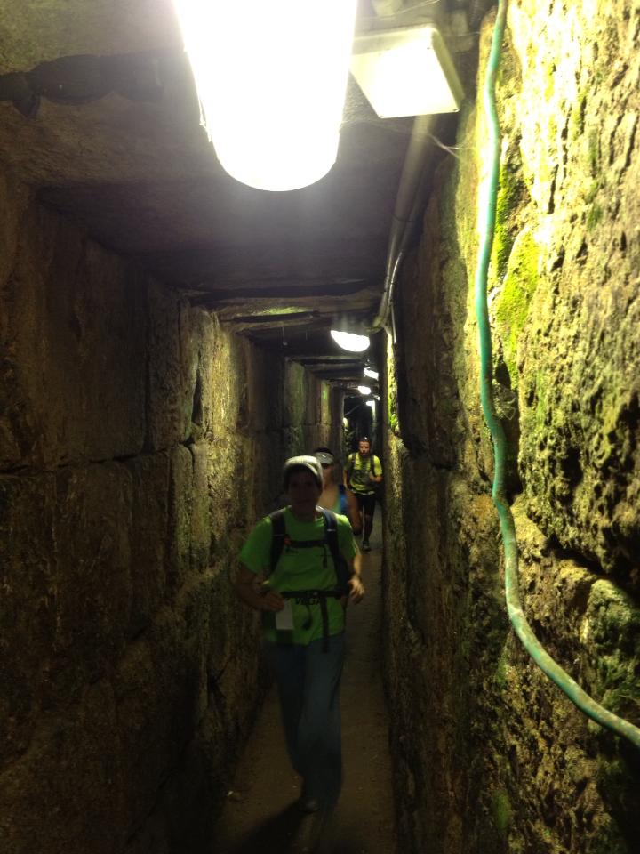 המשכנו לבריכת השילוח, שאליה זרמו מי הגיחון באמצעות נקבת השילוח. בתחילתה של הבריכה – ציור יפה של עולים לרגל, מקיימים את מצוות העלייה לרגל לבית המקדש. בנקודה זו לא מתאפשר לרוץ, והלכנו במעבר הצר של הבריכה. טיפות טפטפו על ראשינו. "אבל מה עם המאפייה?" שאלה יערה, שפסעה מאחורי. "הגעתי לריצה הזו בגלל שהבטיחו לנו ביקור במאפייה". אך כאשר המעבר הפך צר אף יותר הכריזה: "מזל שלא הספקנו לבקר במאפייה". מנש הסב את תשומת לבנו לפתקים שנתחבו בין אבני הבריכה. לדבריו, מי שהשתמש בבריכת השילוח כתחליף לכותל, יודע שהפתקים משם אינם נלקחים, בניגוד לפתקים שבין אבני הכותל, שמדי פעם מועברים לגניזה. הסתיים המסע בבריכת השילוח ומצאנו עצמנו בפינת הכותל המערבי והכותל הדרומי, מקום שבו נמצאה הכתובת "לבית התקיעה", שם תקעו הכוהנים בחצוצרות להבדיל בין קודש לחול.