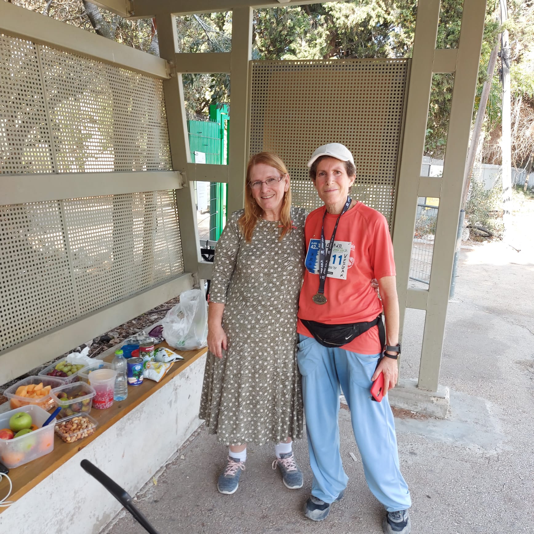 לקראת סיום, בקיבוץ עין השופט, אני רואה לפתע את ליאורה האהובה, שיצאה לקראתי לקבל את פניי למרות הכאב המציק ברגלה. אני נרגשת מהמחווה שנותנת לי זריקת עידוד נוספת לעשרות המטרים האחרונים של המרוץ, שאותו אני מסיימת בחיוך גדול ובהכרת תודה, למרות כל הקשיים והאנחות בדרך. התברר שגם יריב חיכה לי לפני הסיום, אך לצערי החמצתי אותו.